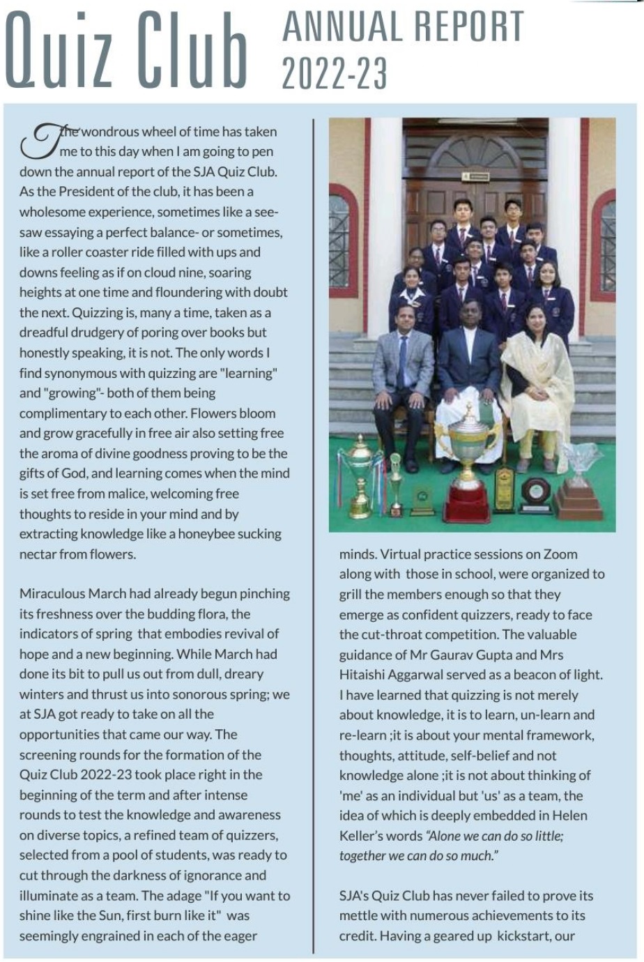 QUIZ CLUB - ANNUAL REPORT 2022-23